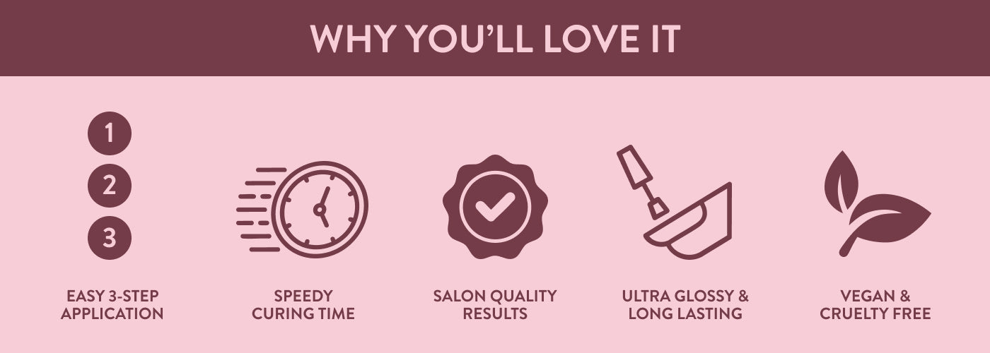 APPLICATION 1-step application: Apply two coats of polish and you’re done! 3-step application: Base coat, nail polish, top coat 3-step application: Prep, Paint, Cure